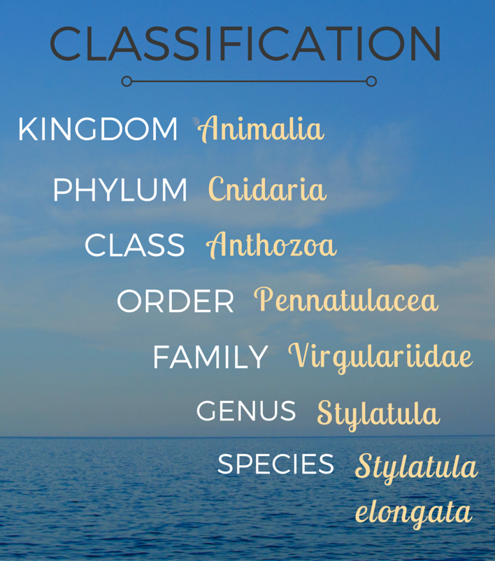 This month’s critter looks a lot like an old fashioned-feather quill pen, and is fittingly named Stylatula elongata, the sea pen.![]() |